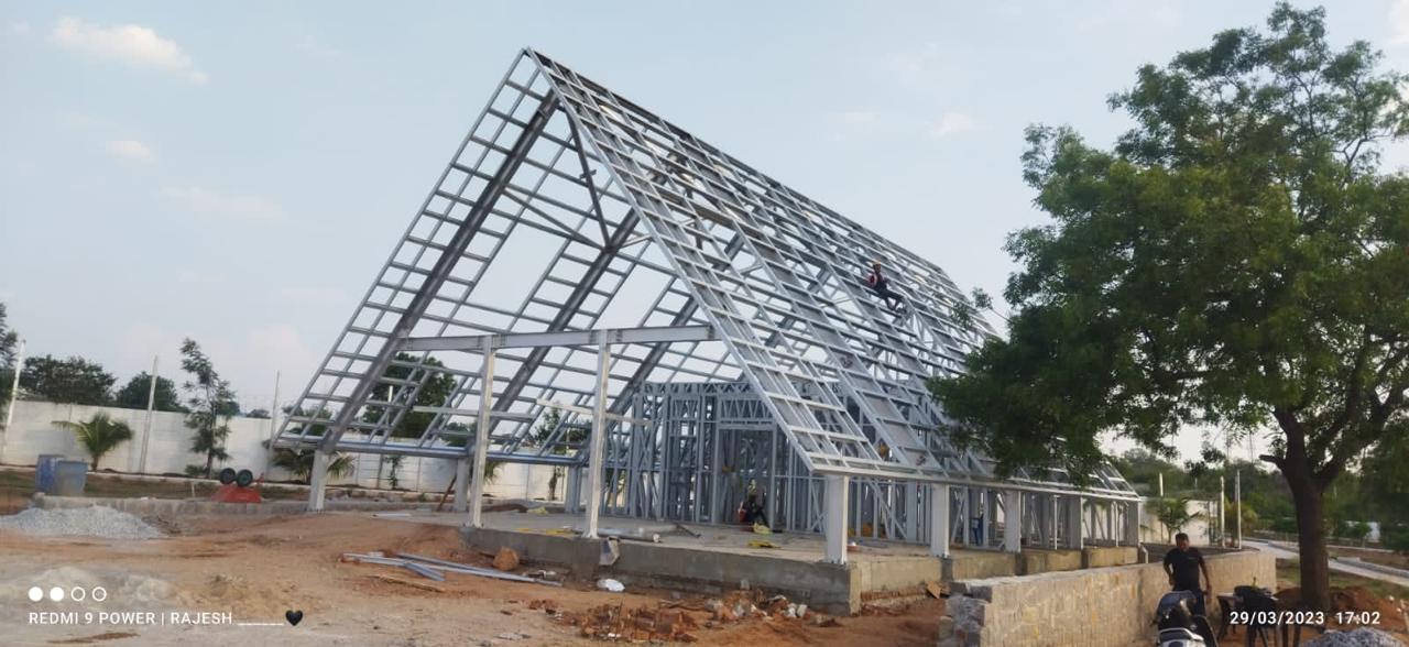 The structure is a hybrid system, utilizing Mild Steel (MS) as the primary load-bearing framework and Light Gauge Steel Framing (LGSF) for wall construction.