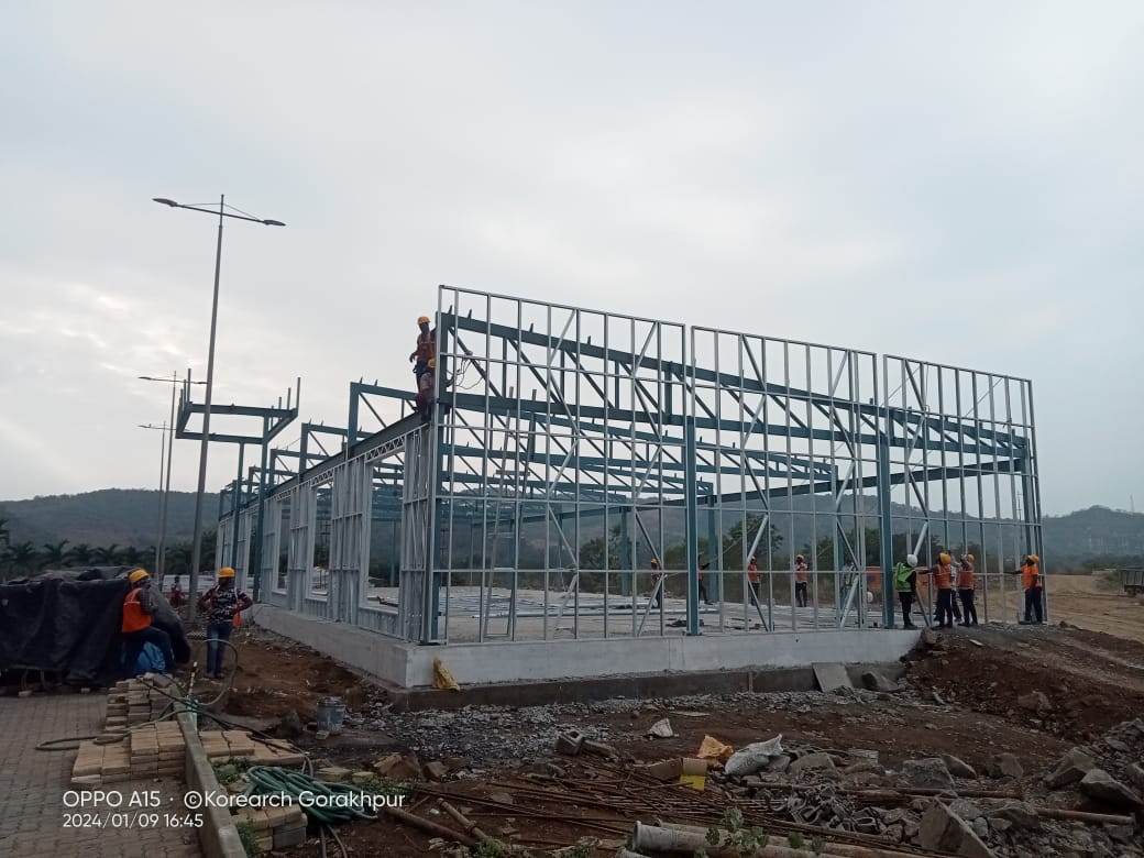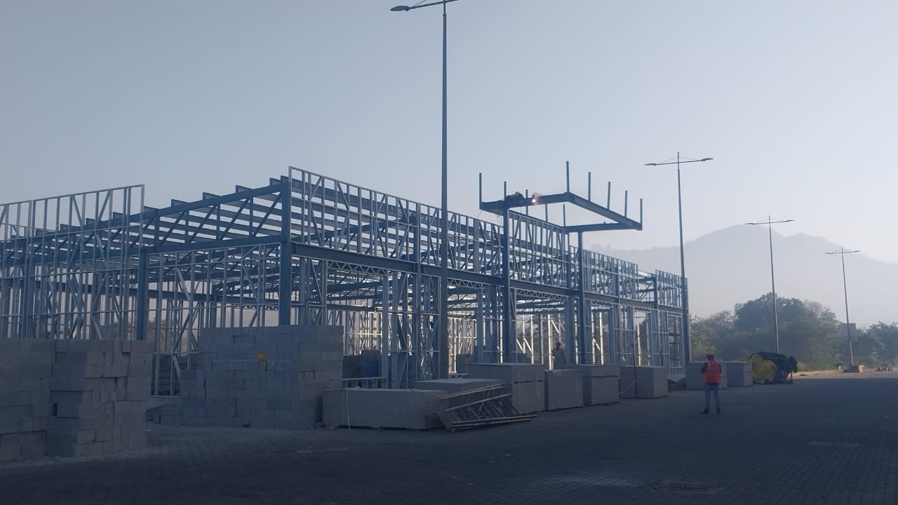 Erection of MS frame with LGSF wall.