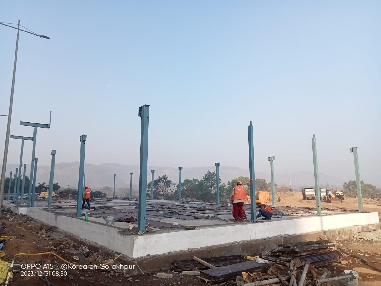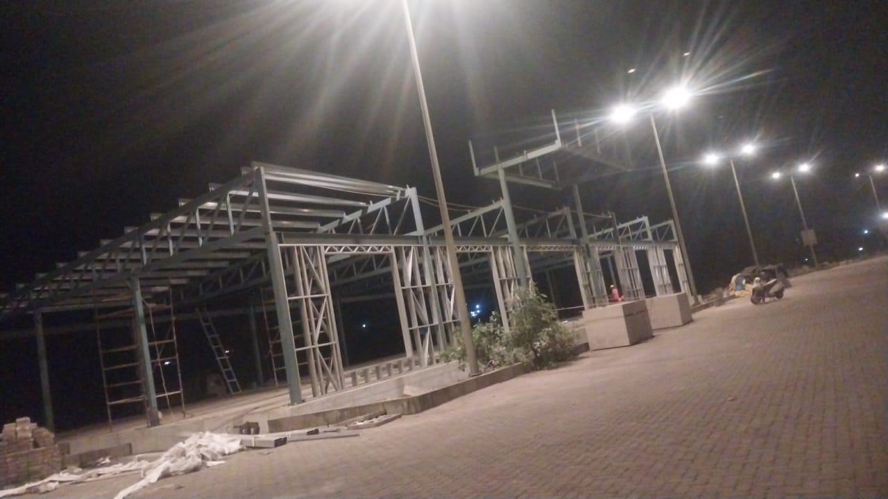 Erection of MS frame with LGSF wall.