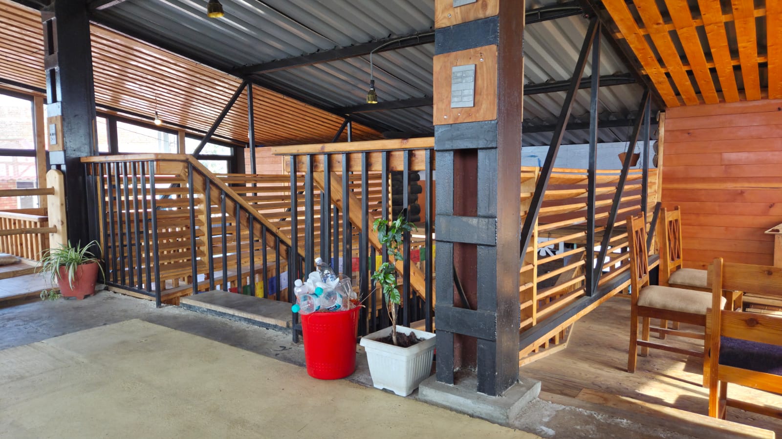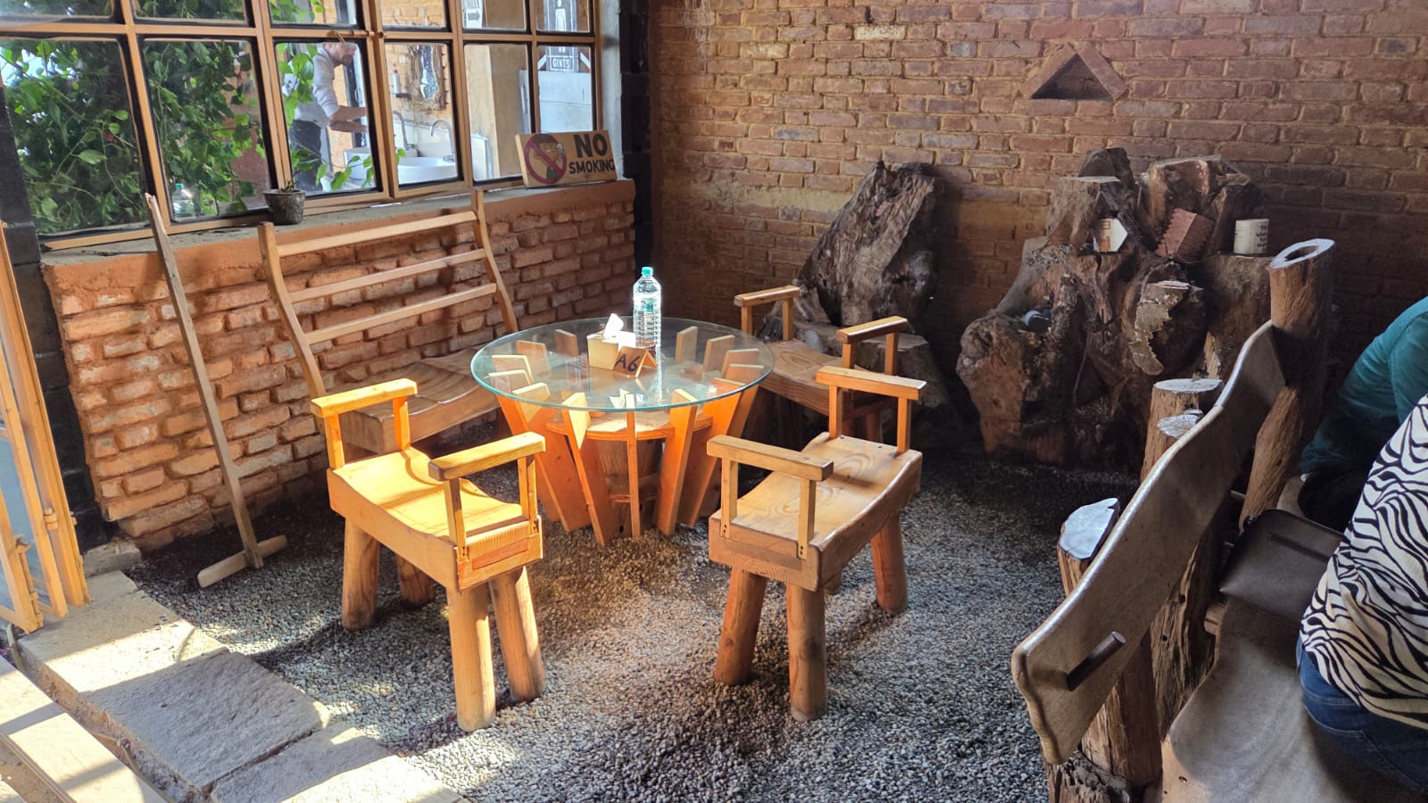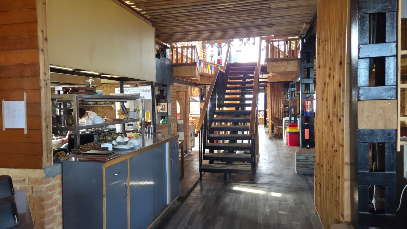 A scenic restaurant space fully executed by KoreArch—from structural work to interiors—featuring exposed brick, bamboo, and pine wood finishes with top-notch craftsmanship